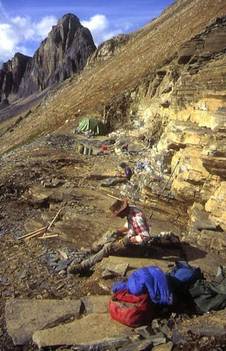 最古の魚が生息するブリティッシュ・コロンビア州の壮大なバージェス頁岩の化石遺跡。 </em>Metaspriggina</em>が発見されました。 Dr Diegio Garcia-Bellido, SA Museum.