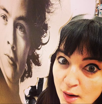 Eu também utilizo um rímel de pestana inferior que me permite obter alguma separação…. enquanto posava com um recorte de cartão Harry Styles como se eu tivesse 16 anos, é claro. Penso que a definição das minhas pestanas de fundo dá ao meu olho um olhar mais arrojado, mais edificante, e não tão jovem. Também mostra destreza com maquilhagem que vem da experiência, pelo que é um intangível.